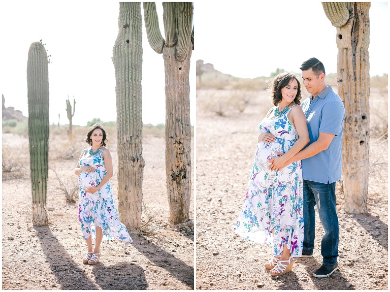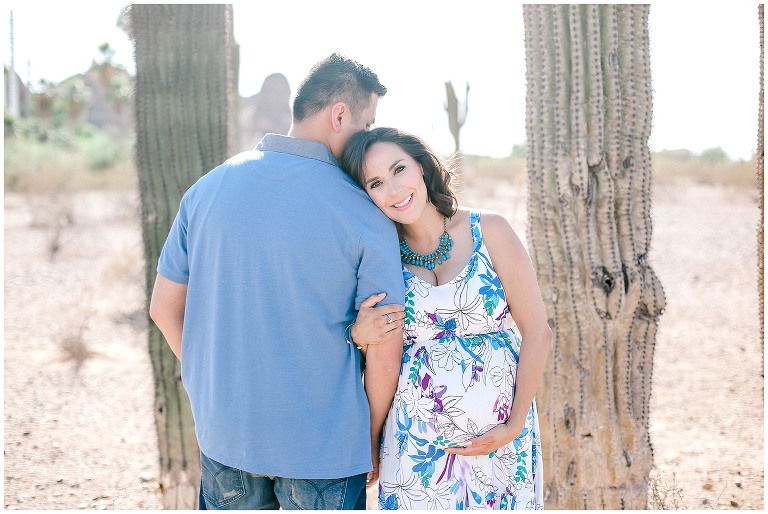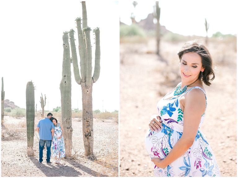 We have photographed this family two times before and we just love them. When Jessica contacted us and told us they have a baby boy on the way, we were so happy for them! 🙂 Jessica told us that she wanted a desert maternity session. We LOVED the idea because you know how much we love our cacti! We met up with them at Papago Park and had such a fun time. We are so excited to meet this little one for his newborn session in August! 🙂Â